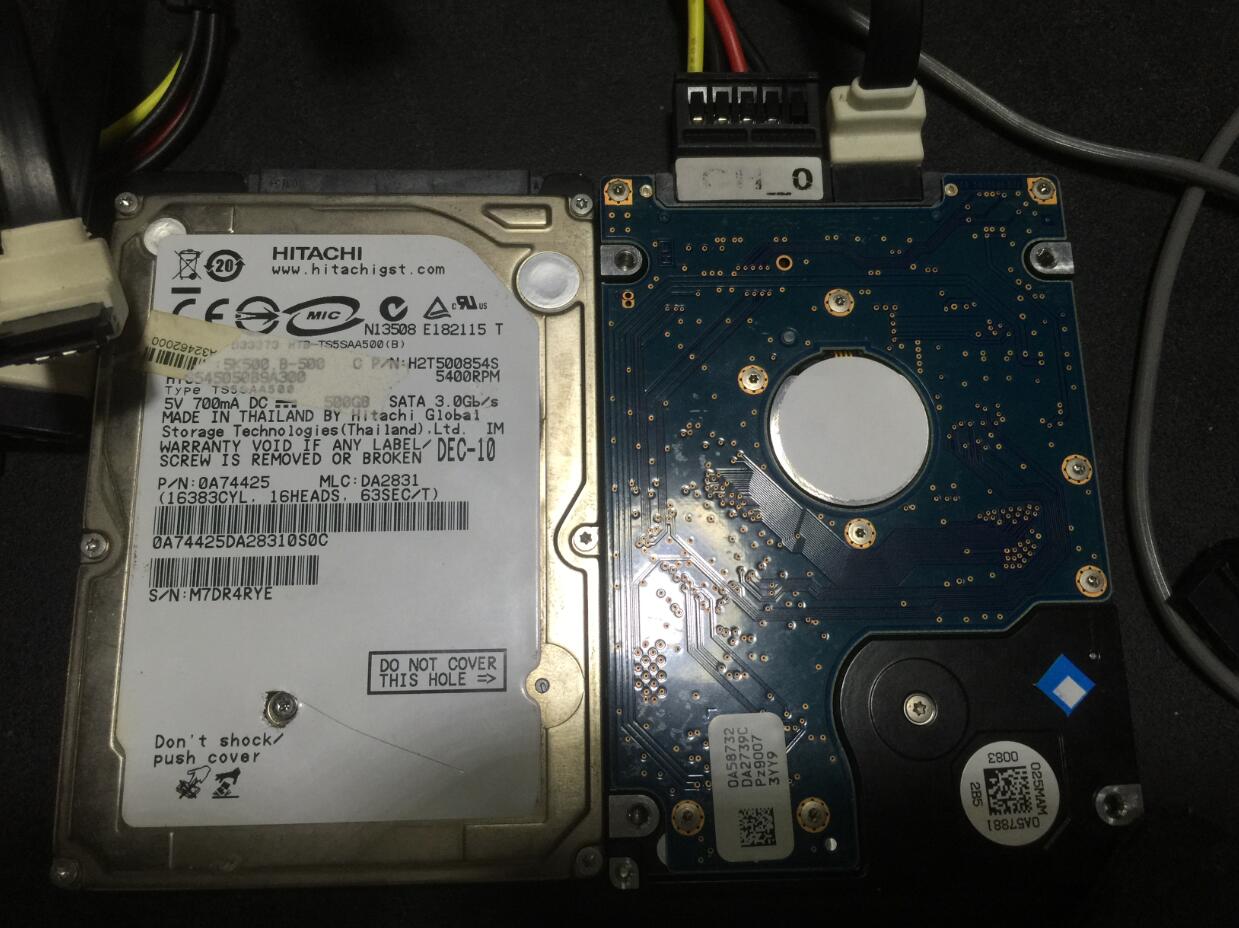 日立500G B9A300系列硬盘,前好后坏开盘修复成功。
