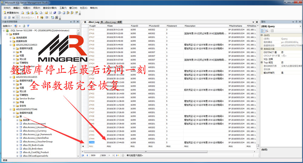 四川宜宾九宏房地产开发公司金蝶财务数据库恢复成功