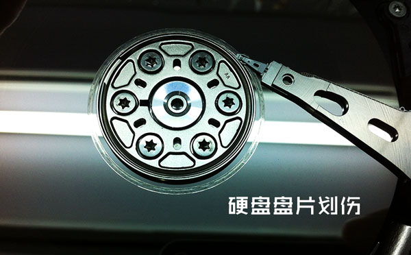 硬盘磁头损坏,盘片划伤: